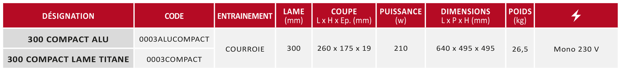 Désignation : 300 COMPACT aluminium